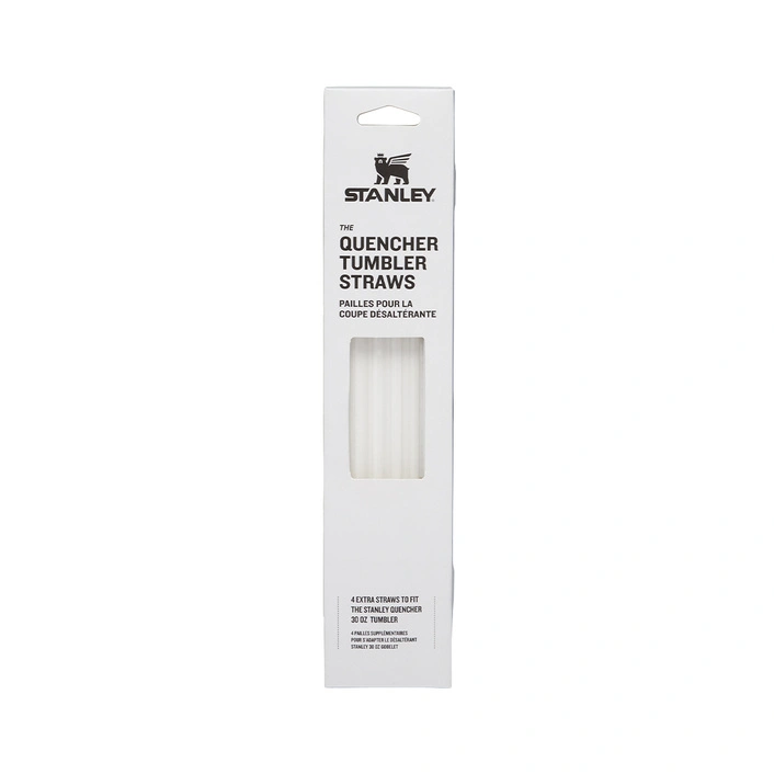 Wymienne słomki zapasowe do kubka Stanley Quencher 0,89l Zestaw 4 słomek do kubka Stanley Quencher Flip Straw Tumbler o pojemności 0,89l. Przejrzyste słomki wykonane są z trwałego tworzywa sztucznego wolnego od BPA, co gwarantuje bezpieczeństwo ich użytkowania. Słomki są wielokrotnego użytku, a materiał, z którego są zrobione jest twardy i solidny. Świetnie się sprawdzą w przypadku zgubienia czy zużycia słomki, która znajduje się w komplecie z wybranym kubkiem.